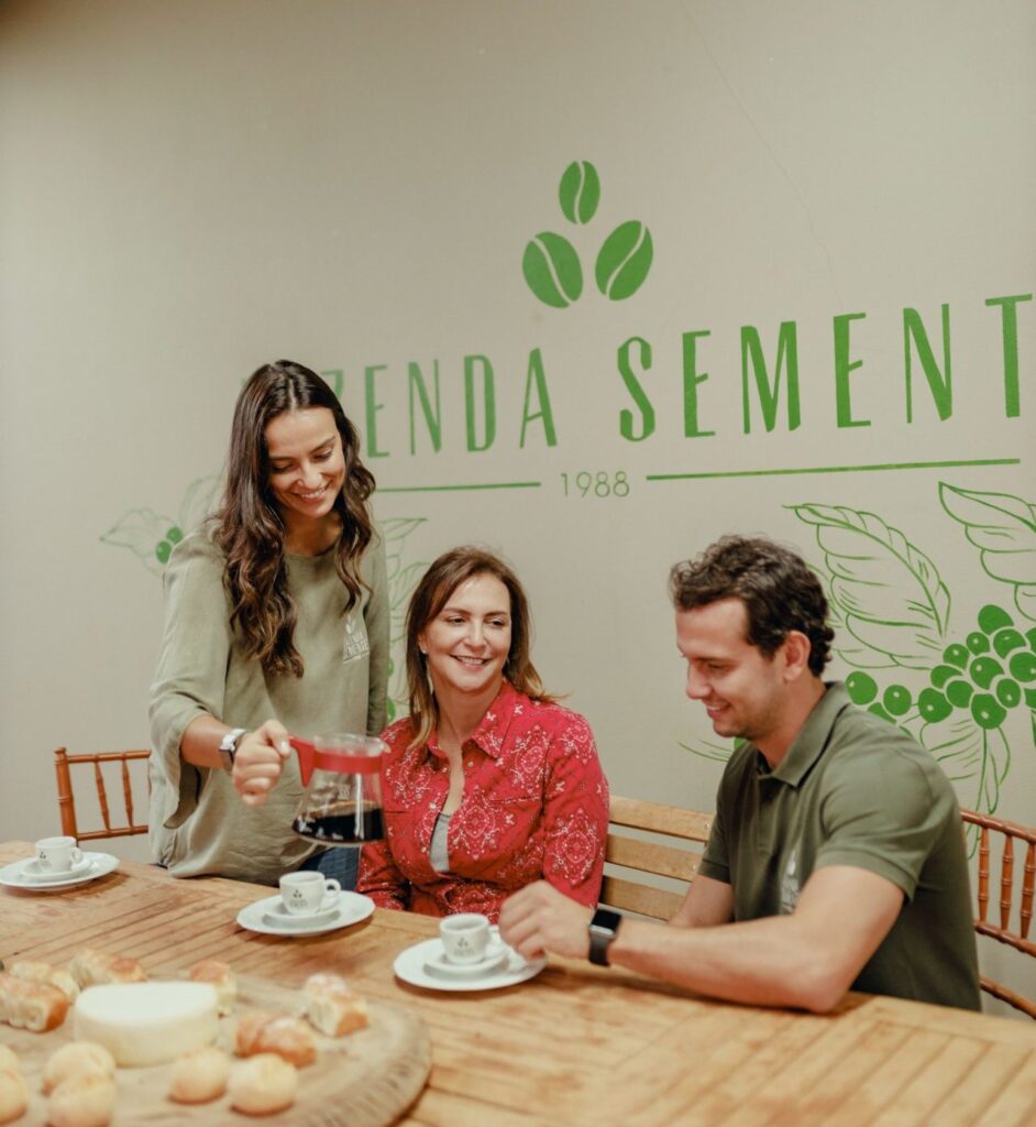 A tradição corre orgulhosamente em nosso sangue, e hoje a Fazenda Semente é administrada por Virgínia Coutinho Aguiar e seus filhos José Lucas, Maria Vitória e Eugênia. Uma família apaixonada pelo que faz e que trabalha com dedicação e respeito aos grãos, garantindo experiências únicas aos apreciadores dessa bebida.